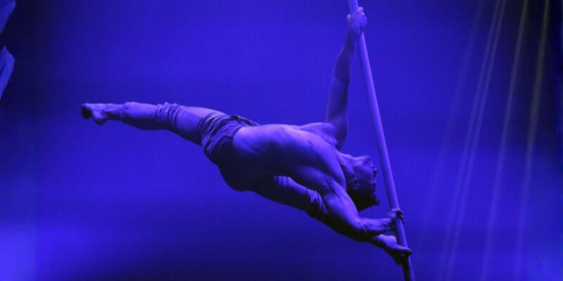All cirque shows include the aerial arts and this team were incredibly skilled in them. Moscow born Svyatoslav Rasshivkin with chiseled physique and boyish charm was flawless and executed the perfect tumble to wide applause. Zoe Marshall was exquisite and her first solo performance involved being lifted into the air by her hair while spinning and swinging above the audience. It wasn’t just straps and Spanish web used in the act – both Maria Moncheva and Philipe Reyes at one point actually used chains, a novel and thrilling addition to the programme. Philipe also provided some extra thrills by using a flaming baton in one of his aerial routines and later demonstrated incredible strength while hand balancing.